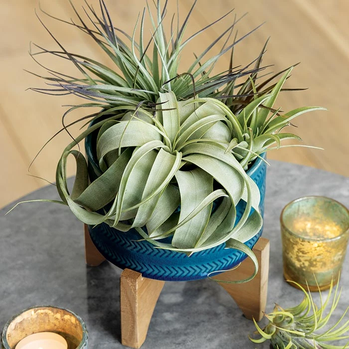 Elevated by a wood base, our gorgeous ceramic potager is overflowing with a variety of the most fascinating air plants. Expertly arranged and ready to display, Air Plant Garden is a stunning showpiece that’s wonderfully easy to care for. Measures approximately 6″ in diameter by 8″ tall.