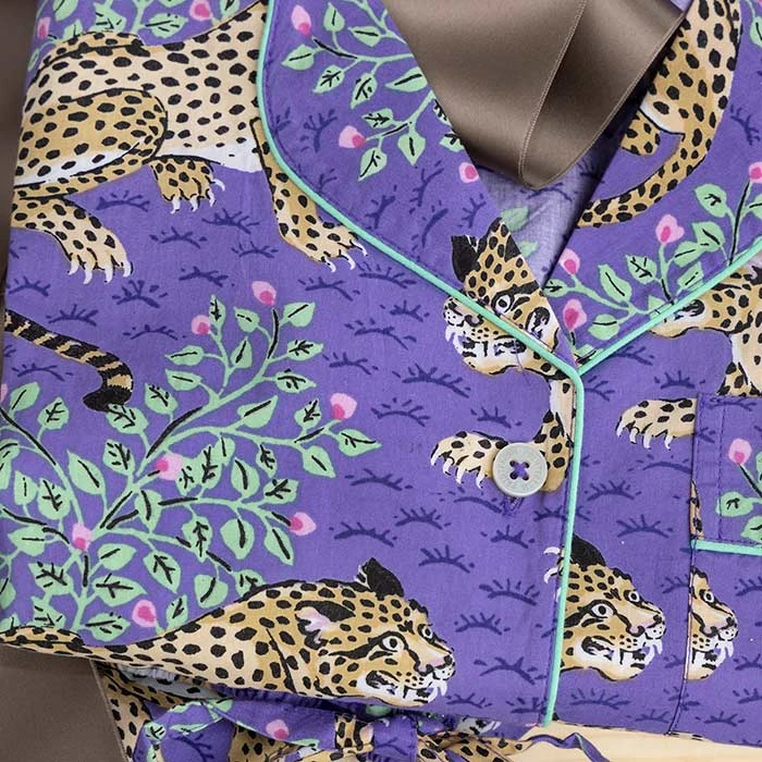 Send her sleepwear that’s perfect for just a little catnap. Pajama set includes a long sleeve button front top and matching drawstring elastic waistband pants with pockets. Woven of 100% organic cotton, pajamas are available in women’s sizes small, medium, large, and extra large and arrive gift wrapped in a hand crafted wood crate with ribbon.