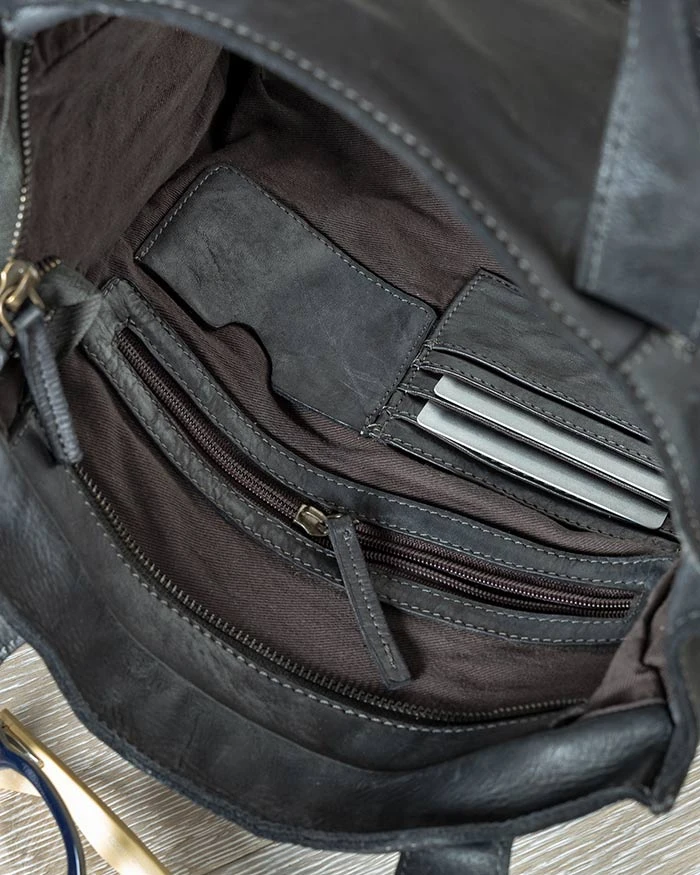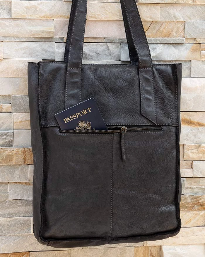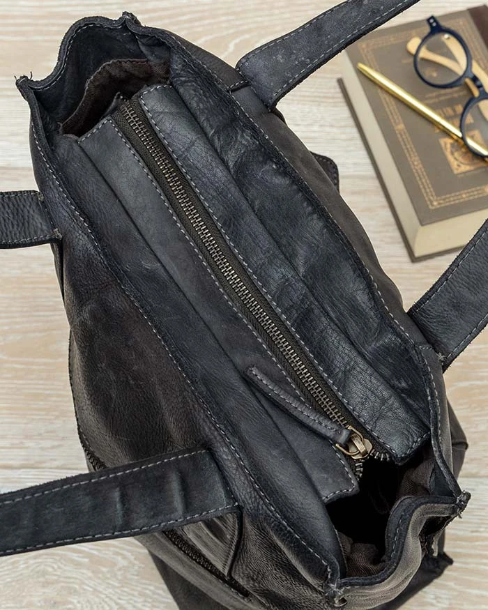 Charcoal Leather Tote