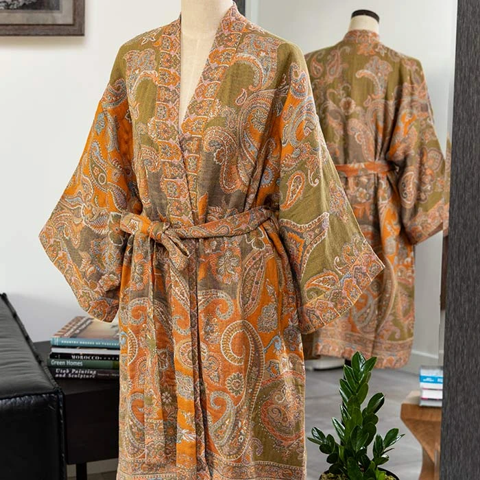 Bold, inspired, and undeniably fashionable, our Couture Paisley Kimono is woven of robust cotton adorned with tapestry-inspired paisley patterns, making it perfect at home or away. Comfortable kimono has roomy sleeves and a matching belt. Women’s one size fits most kimono arrives packaged in Olive & Cocoa® gift wrap with ribbon.