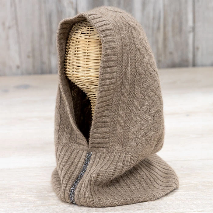 NEW! Sumptuously soft cashmere is embellished with a line of crystalline accents to bring chic warmth to her look. Elegantly understated fawn brown hood is women’s one size fits most and arrives gift wrapped in a hand crafted wood crate with ribbon.