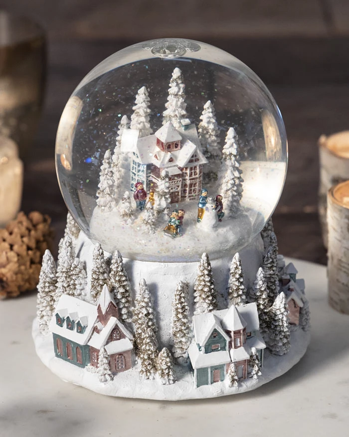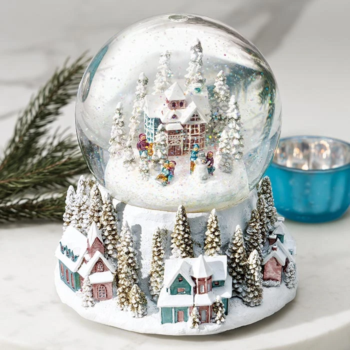 NEW! A daydream of a darling town comes to life with a swirl of snow and a festive tune. Snow globe measures approximately 6″ in diameter by 7″ tall and arrives packaged in Olive & Cocoa® gift wrap with ribbon.