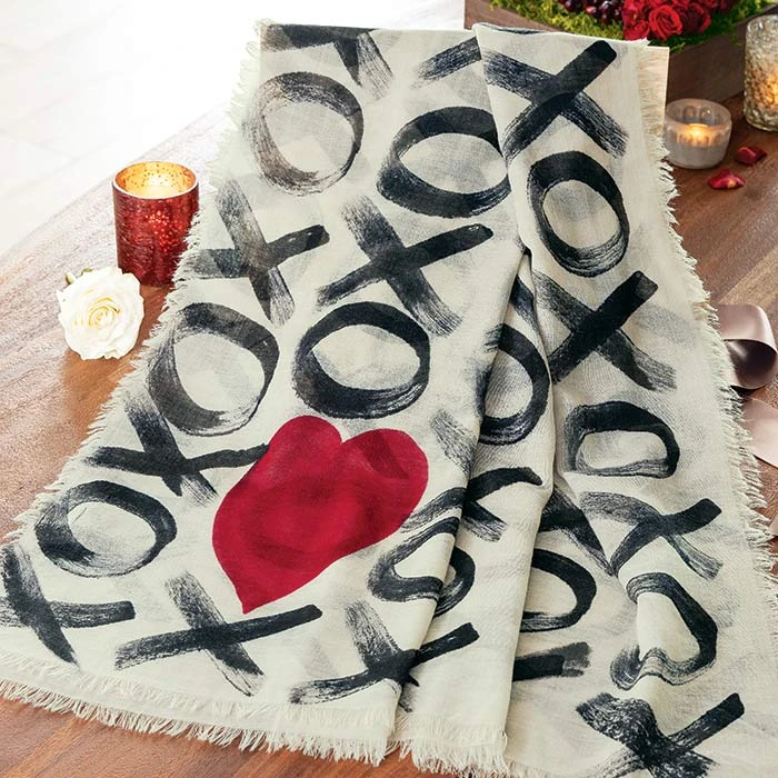 She’ll love sauntering through town draped with all your hugs and kisses. Woven of soft, slightly sheer wool with a touch of silk, our Hand Painted XO Scarf is covered with authentic brushstrokes and a large red heart. Scarf measures approximately 40″ x 75″ and arrives packaged in a signature Olive & Cocoa® canvas and burlap tote with ribbon.