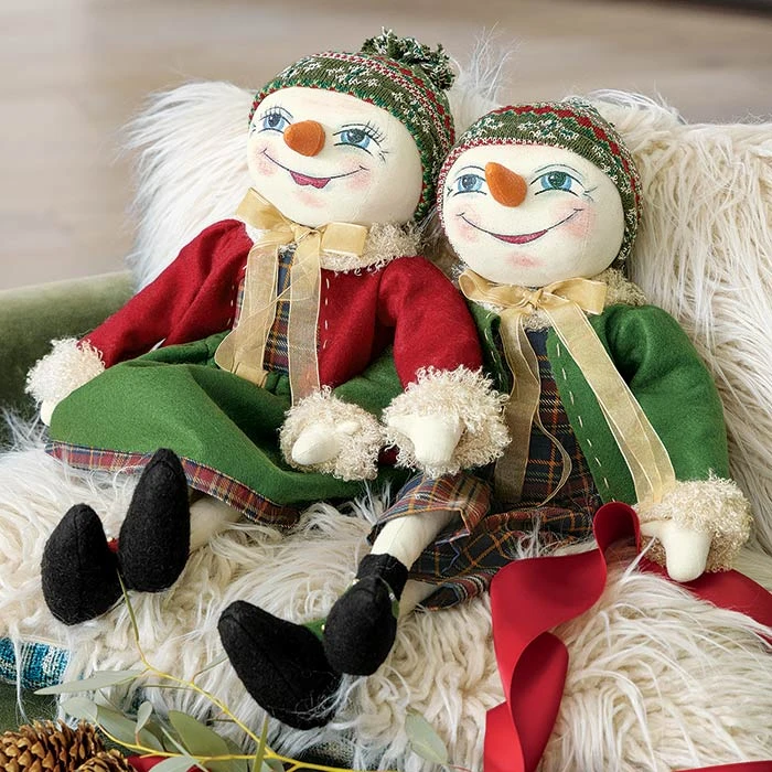 Though they resemble snow, Lucca & Lyla are here to warm every heart. Hand painted with adorable expressions, our collectible snowman couple wears their best matching beanies, golden ribbons, and complementary felt jackets to spread cheer year after year. Each measures approximately 19″ long and the pair arrives packaged in Olive & Cocoa® gift wrap with ribbon.