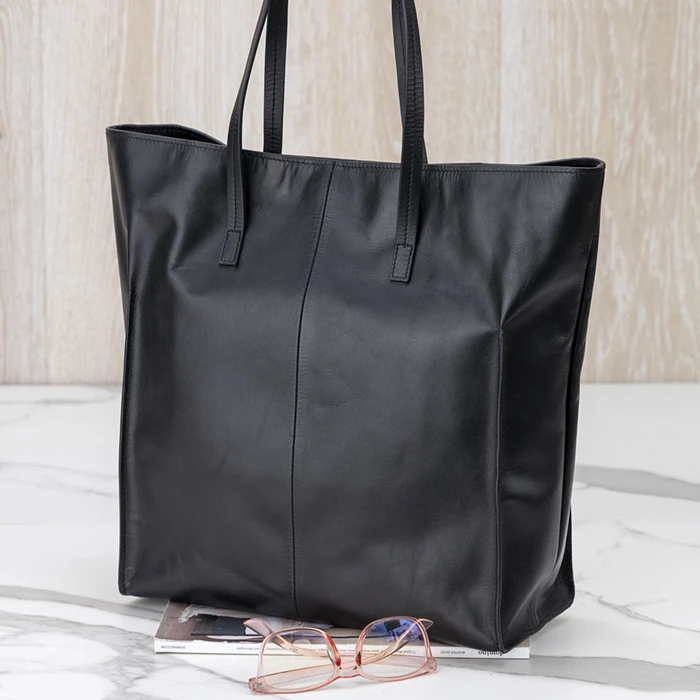 NEW! A flawless design in sleek black leather is the definition of timeless fashion. With a snap closure, an outer pocket, and an interior drop pocket, unlined Obsidian Leather Tote measures 17″ x 5″ x 14″ with a 10″ drop and arrives packaged in Olive & Cocoa® gift wrap with ribbon.