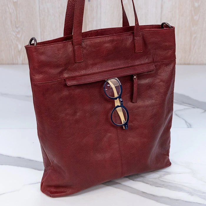 Eye catching with universal appeal, our Oxblood Leather Handbag deserves a place in every wardrobe. With a stunning deep crimson hue, lined handbag features 3 exterior pockets, internal pockets with an organizer, a zip-top closure, and a detachable shoulder strap. Measuring approximately 14″ x 4″ x 14″ with an 11″ drop, handbag arrives packaged in Olive & Cocoa® gift wrap with ribbon.