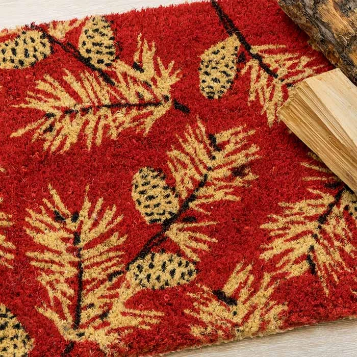 A smattering of pinecones and branches warmly greets guests throughout the harvest and winter seasons. Generously sized and crafted of natural coconut coir, Pine Bough Estate Mat measures approximately 18″ x 40″ and arrives adorned with a fluffy signature Olive & Cocoa® satin bow. If natural shedding occurs, a simple shake will do.