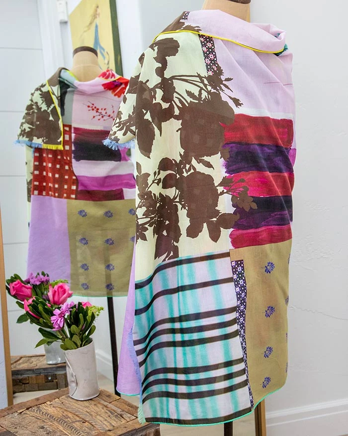 Why pick one bold pattern when you can have them all? A lightweight blend of silk and cotton, our Silky Medley Scarf is a chic combination of contrasting designs that’s sure to turn a few heads. Finished with a delicate multicolor fringe, scarf measures approximately 38″ x 76″ and arrives gift wrapped in a hand crafted wood crate with ribbon.