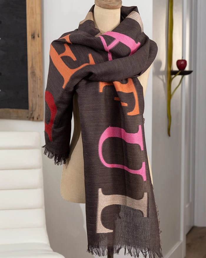 Send her a reminder that she’s always beautiful. Woven of a lightweight blend of cotton and silk, wispy-edged scarf has a cocoa brown background with colorful letters that spell out the word “Beautiful.” Scarf measures approximately 30″ x 70″ and arrives gift wrapped in a hand crafted wood crate with ribbon.